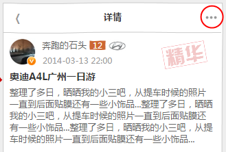 1£©ÓÒÉϽÇÏÔʾһ¸ö²Ëµ¥°´Å¥£¬°üº¬3¸ö²Ëµ¥£º·ÖÏí¡¢Ö»¿´Â¥Ö÷£¨²é¿´È«²¿£©ºÍ·Ò³£¨È¥µôÔÌû×ÓÏêÇéҳˢа´Å¥£¬AndroidÖм䵯³öÒ³ÂëÊäÈë¿ò£©£¬ÑùʽiOSÓëAndroid·Ö¿ª£¬Óë4.0°æ±¾»î¶¯ÏêÇéÒ³²Ëµ¥Ò»Ö£¬ÐèÉè¼Æ¡£Êղع¦Äܱ¾°æ±¾ÔÝʱÒþ²Ø¡£±¾Ò³ÃæÖ§³ÖÏÂÀ´Ë¢Ð²Ù×÷£¬ÑùʽÏê¼ûÉè¼Æ¸å¡£¡¾05ÔÂ14ÈÕ¡¿
