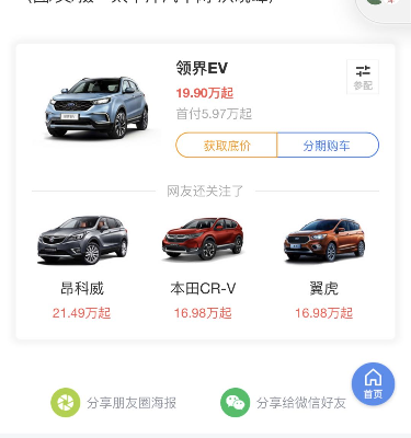 分别跳转询底价页、分期购车页