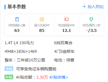 新能源车型页未提及部分皆和车型页一致;