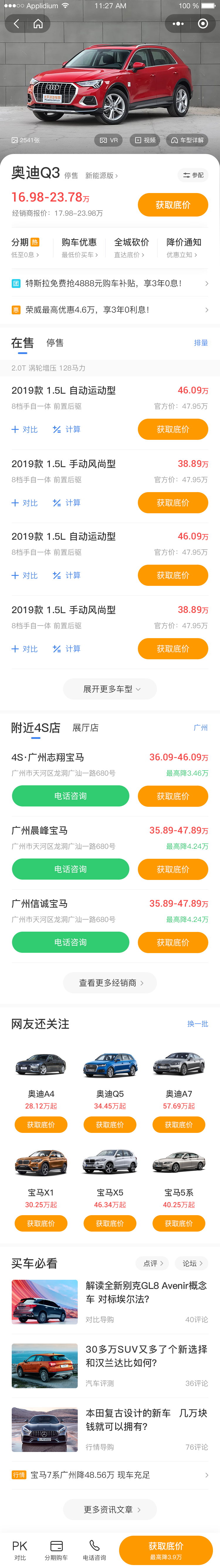 官方指导价、经销商报价:根据接口出;无经销商报价是隐藏该行;无官方指导价时,文案显示:暂无报价;