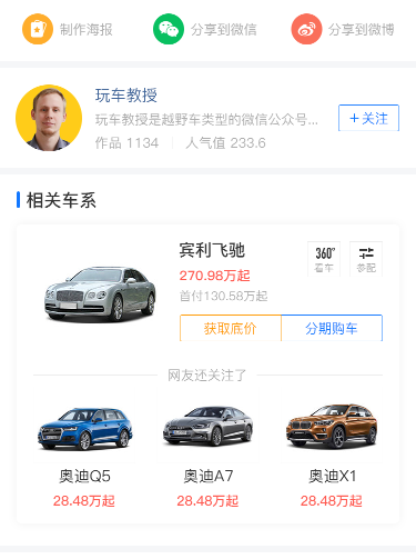 3.可能无分期购车,无分期购车时,样式优化;(现文章页该情况下,只有半圆“获取底价”);
