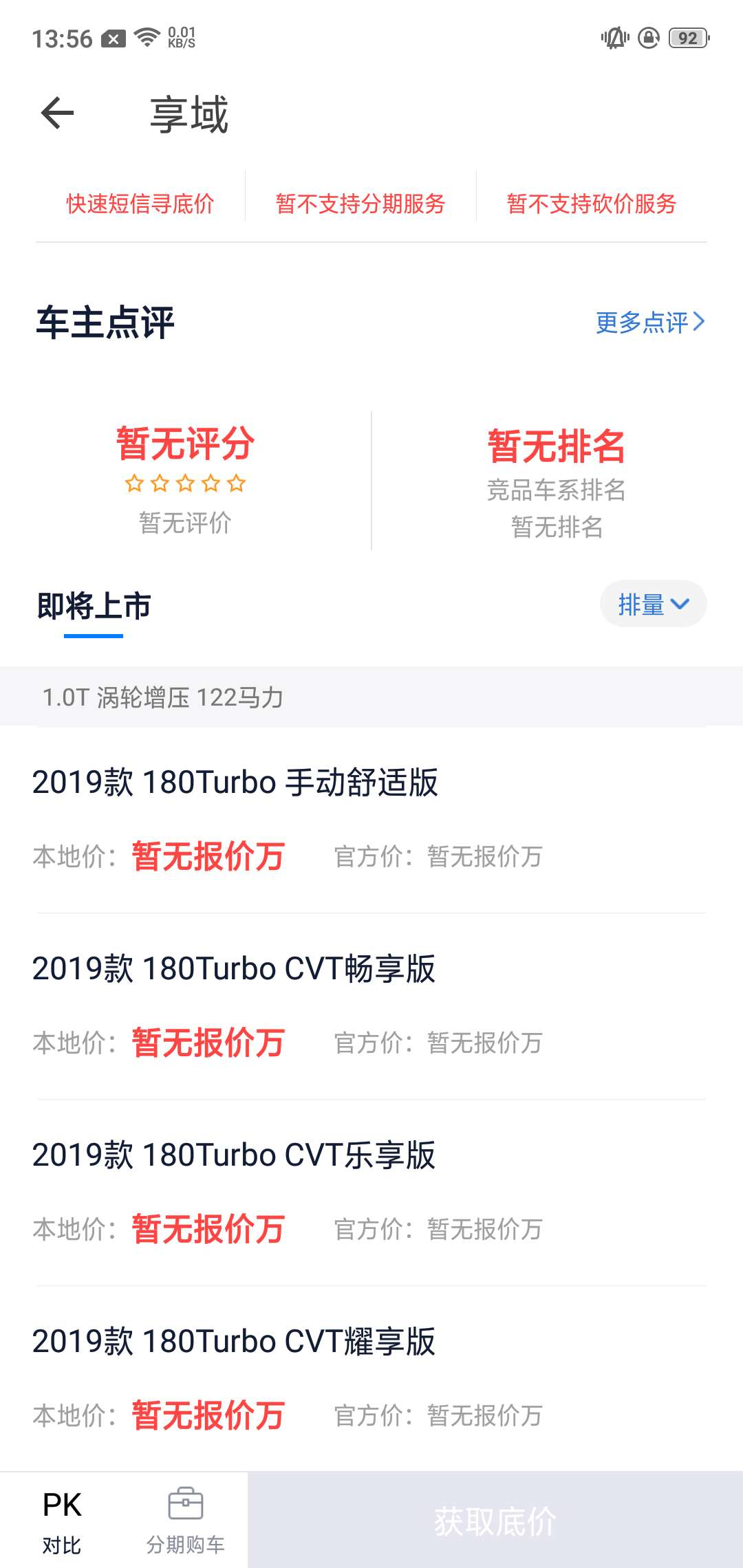 现,车系页车型列表中,无报价时文案:暂无报价万;