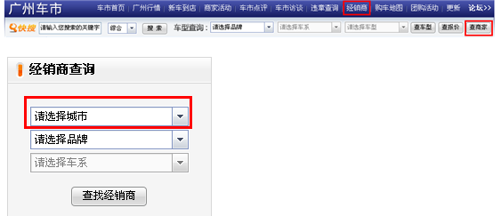 1、全国首页、车市页顶部导航经销商、搜索商家,无ip识别,需要2次点击城市。不利于网友查询,建议添加ip识别功能: